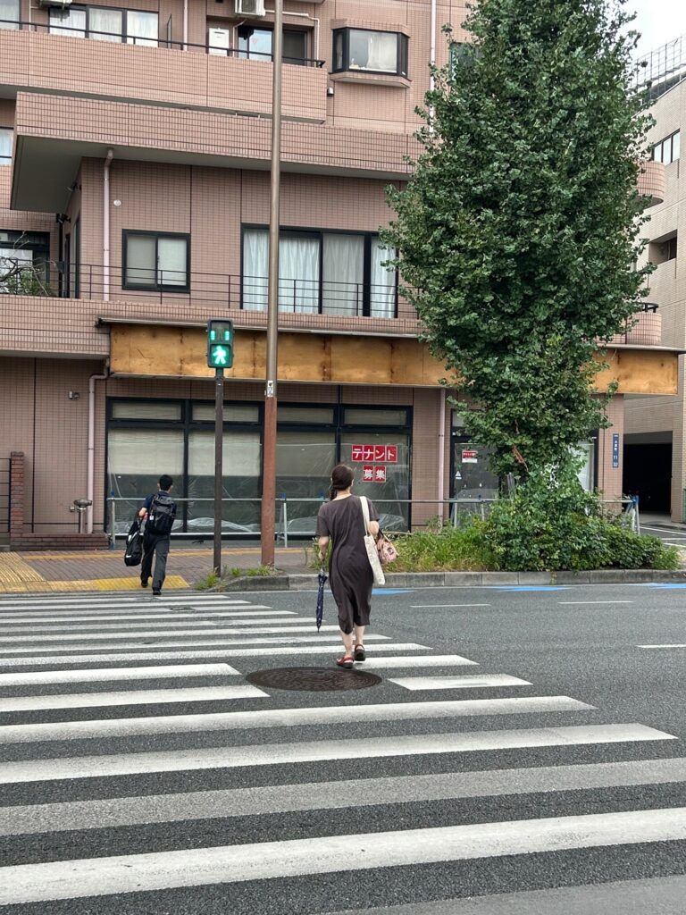 クリニックは交差点の目の前の1階という、非常に目立つ位置にあります。交差点には横断歩道があり、信号待ちをする多くの人が自然とクリニックを目にします。この立地は、高い視認性と人通りの多さから、新規患者の獲得に大きな強みとなります。