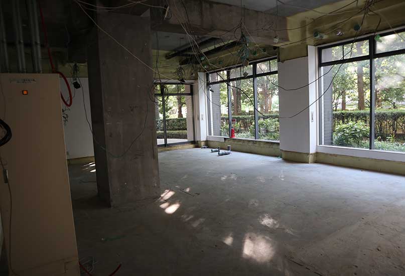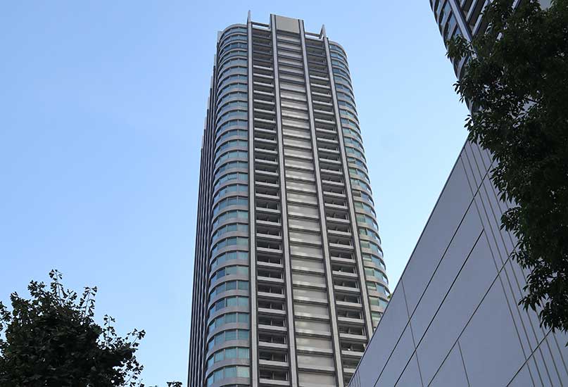 クリニックは、汐留の中心部にある超高層マンションの1階という、非常に希少性の高い場所に位置します。